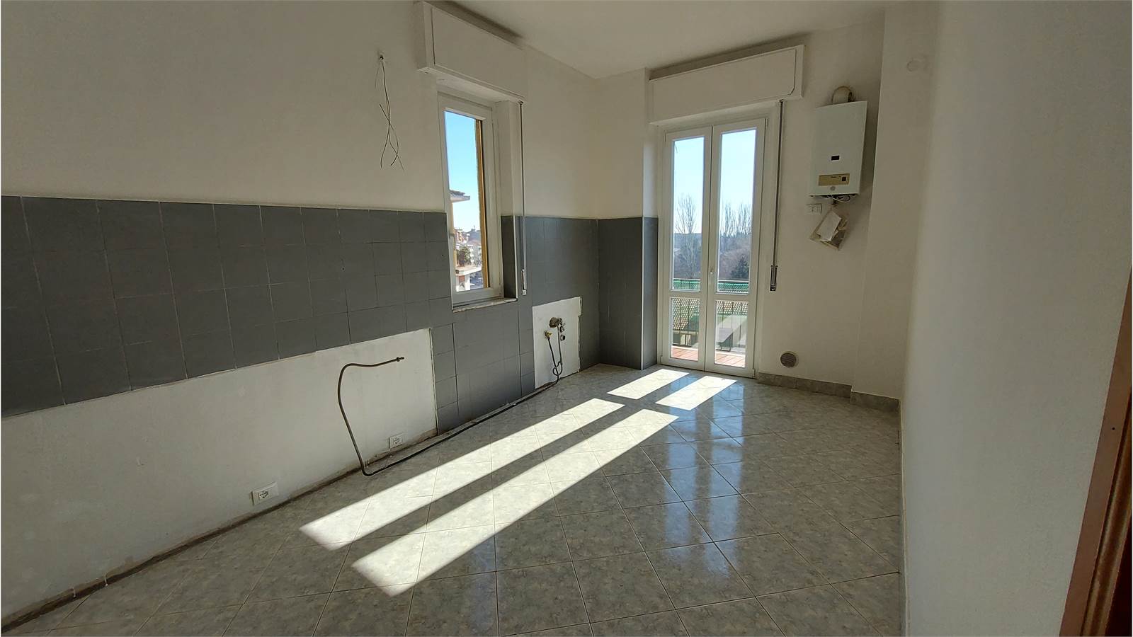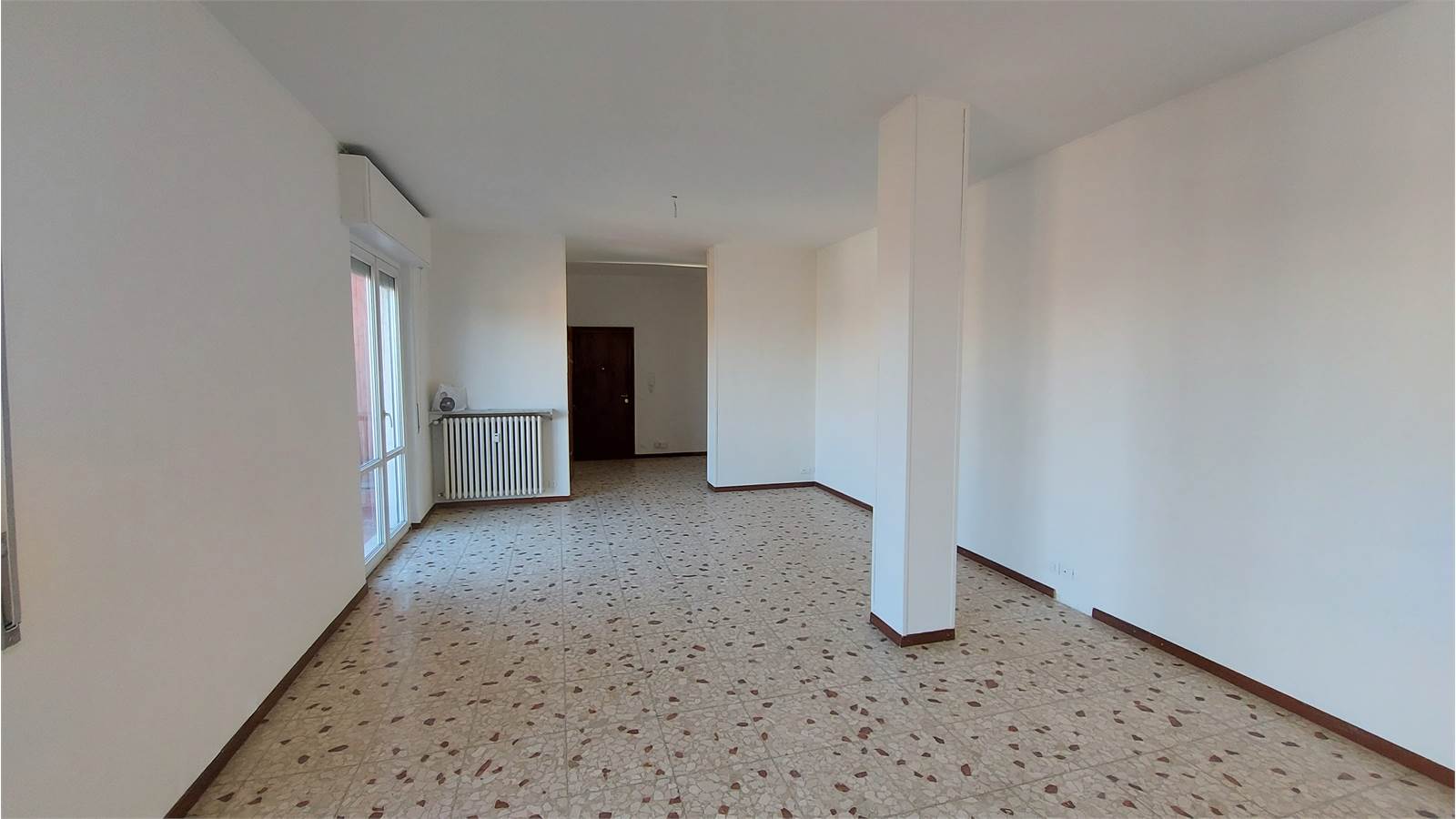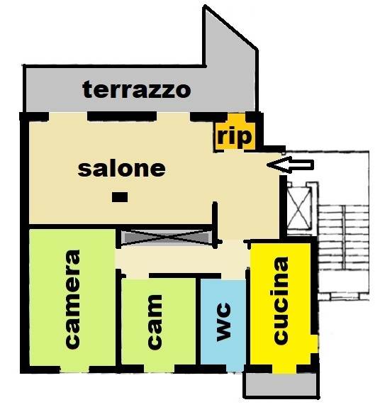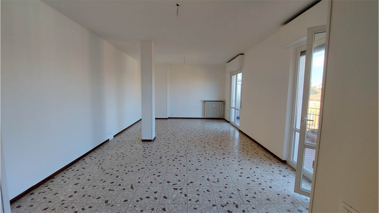 Alloggio di circa 140 mq di tre vani più servizi, composto da ingresso su ampio salone di circa 40 mq. esposto sul TERRAZZO scoperto di 25 mq., spaziosa cucina abitabile con balcone, corridoio nella zona notte con grande armadio a muro, due camere da letto, bagno con vasca e doccia, ripostiglio.